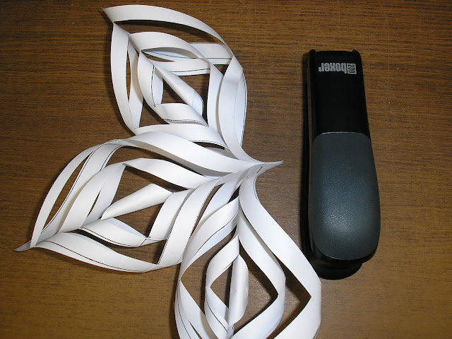 Thế là ta đã cắt dán được 1 cánh hoa. Dùng ghim bấm kẹp 3 cánh hoa lại với nhau và 3 cánh được 1 bông hoa tuyết.